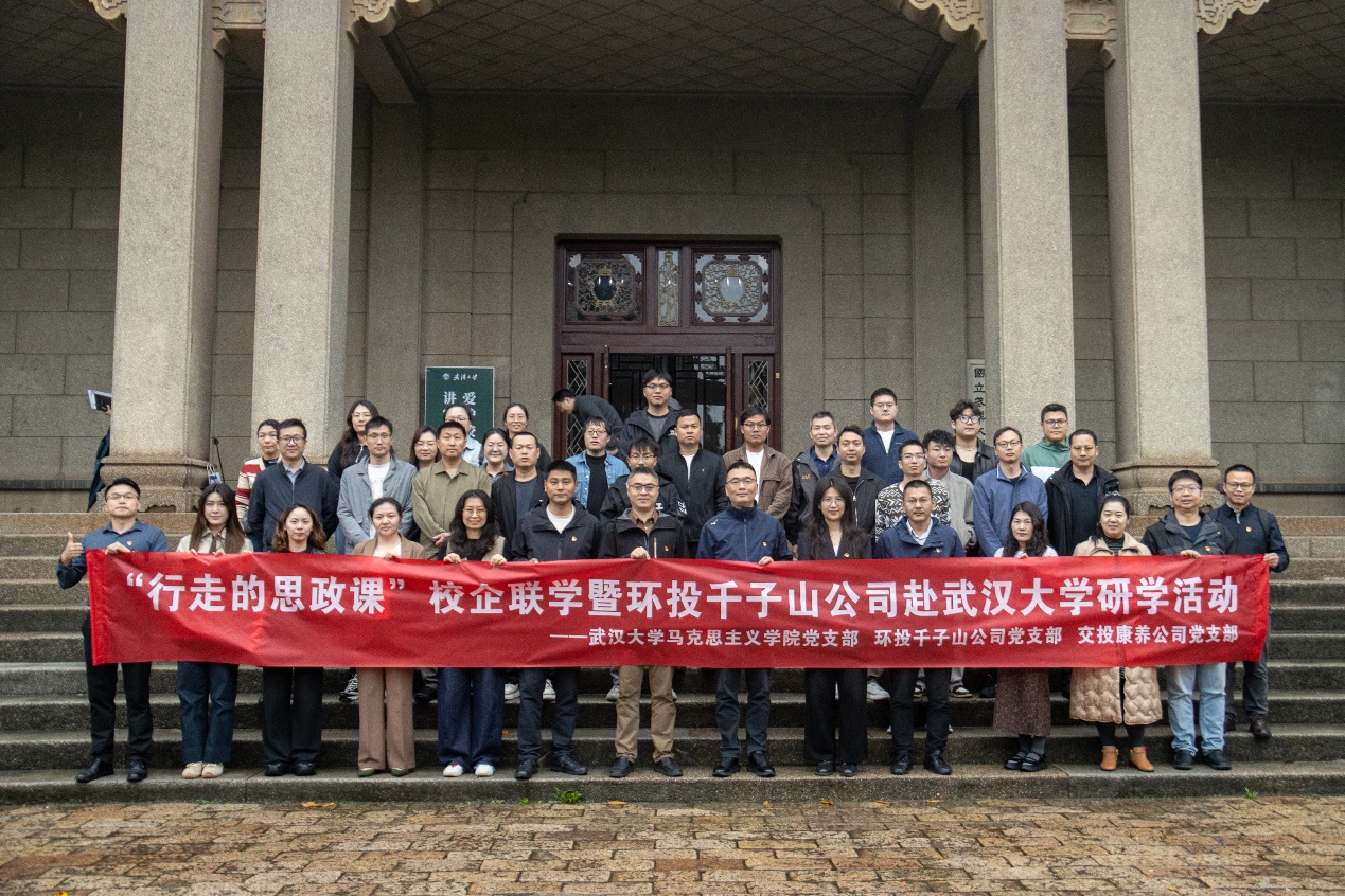 马克思主义中国化系教师党支部、本科生第二党支部与武汉环投千子山公司党支部、交投康养公司党支部共同举办了“行走的思政课”暨校企支部联学联建活动。四个党支部60余名师生、职工代表参加了活动。