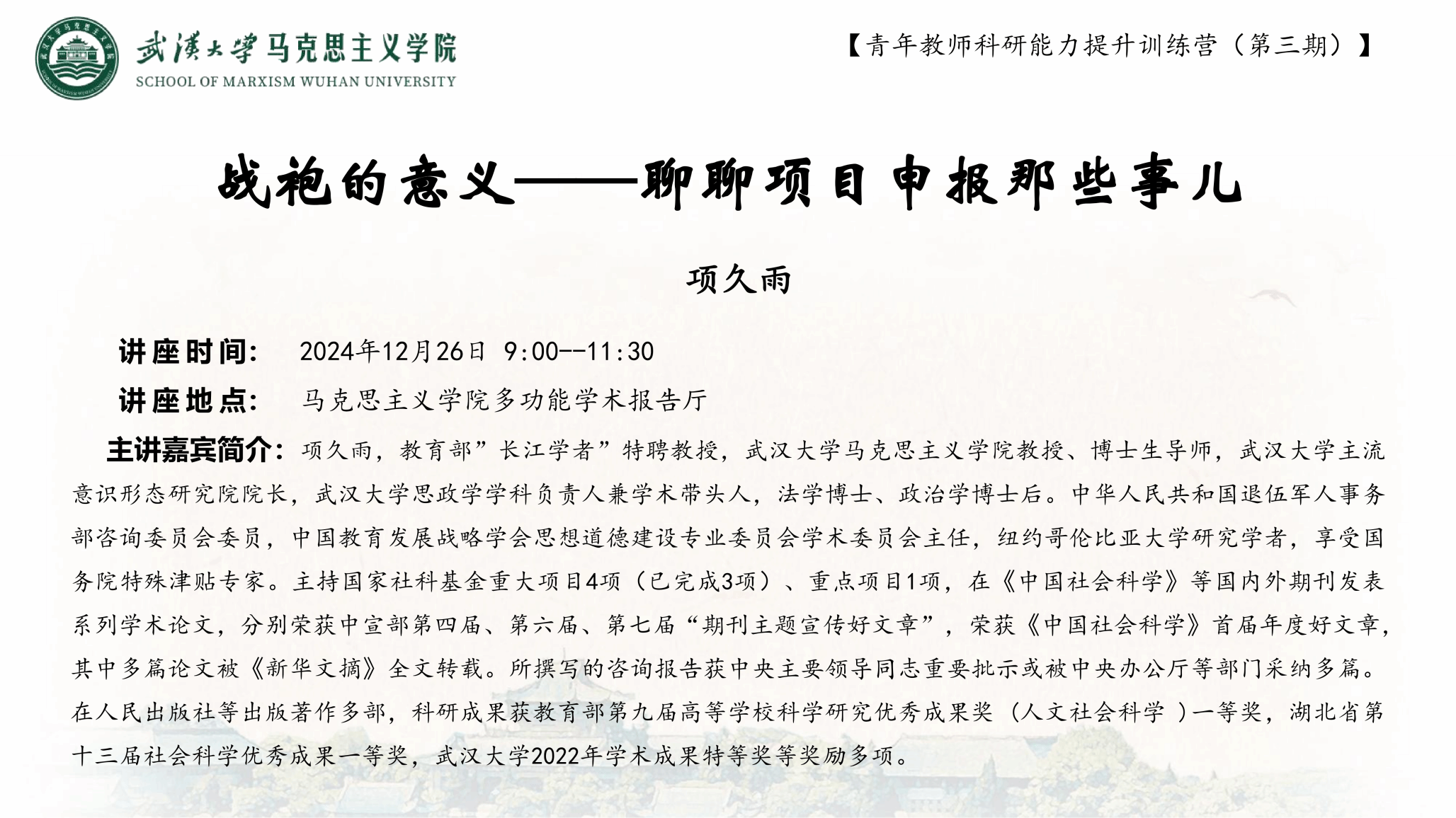 【青年教师科研能力提升训练营(第三期)】项久雨:战袍的意义——聊聊项目申报那些事儿